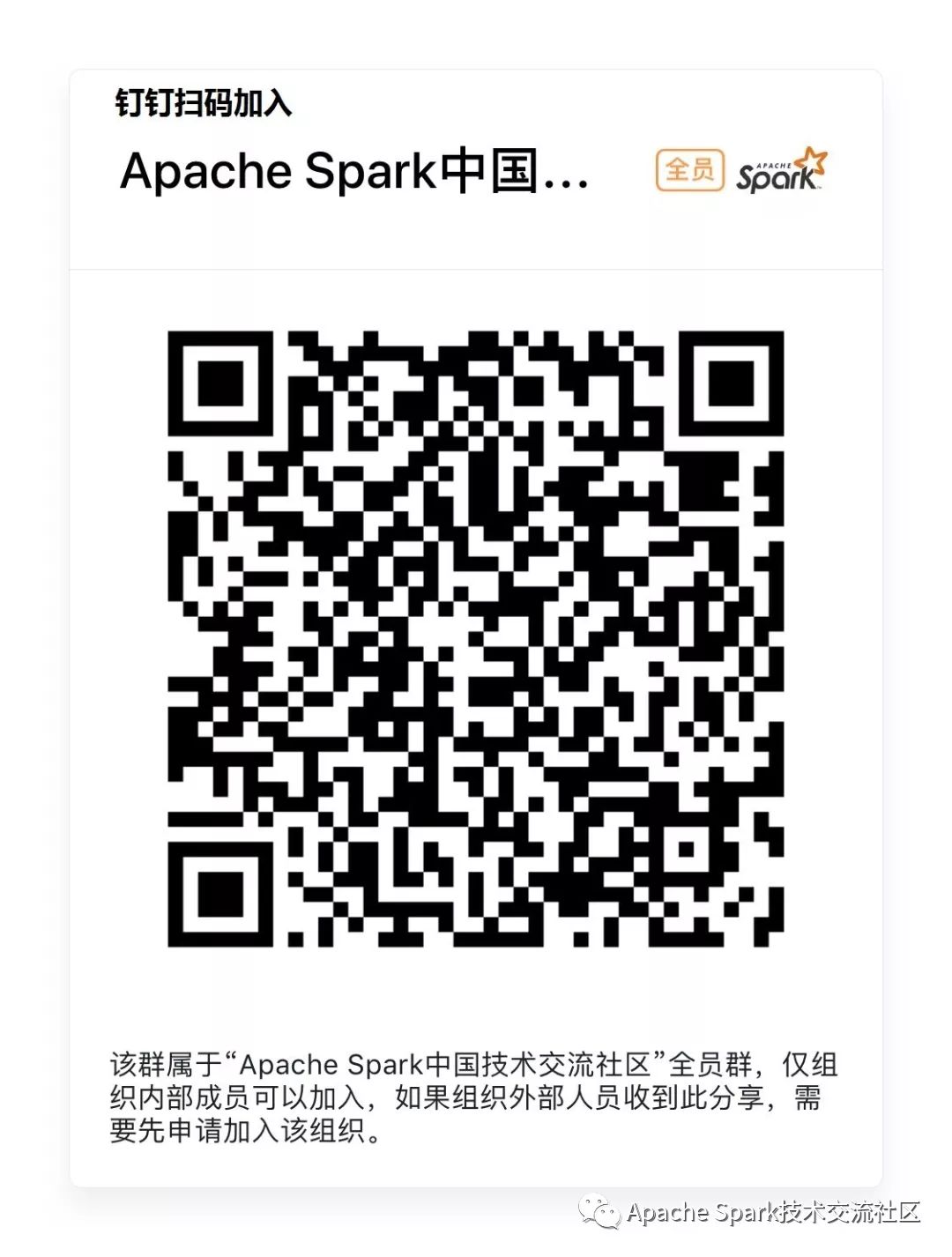 阿里巴巴开源大数据技术团队成立Apache Spark中国技术社区,定期推送精彩案例,技术专家直播,问答区近万人Spark技术同学在线提问答疑,只为营造纯粹的Spark氛围,欢迎钉钉扫码加入!