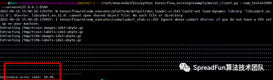 /root/anaconda3/bin/pythontensorflow_serving/example/mnist_client.py --num_tests=1000--server=127.0.0.1:8500