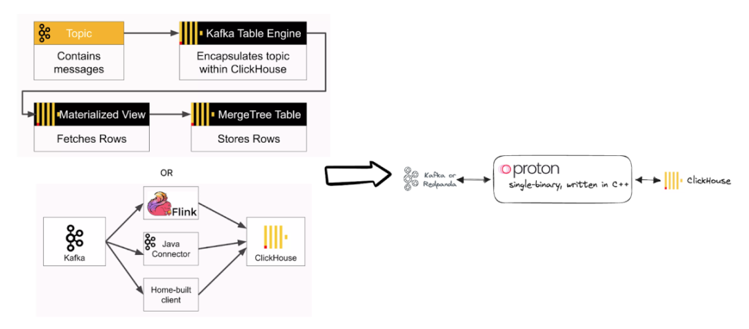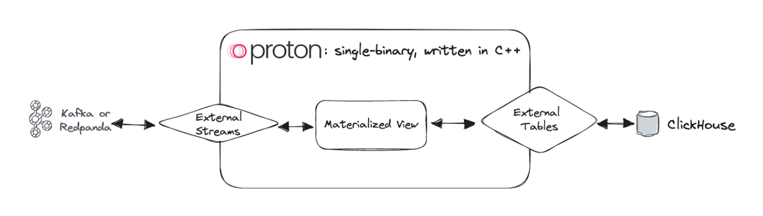 无论你使用ClickHouse Cloud还是ClickHouse的本地/自建版本,Proton都允许你在Apache Kafka或Redpanda中处理实时数据,并将其发送到ClickHouse进行快速可靠的实时流式分析。