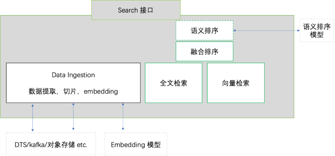 从技术角度,这个是包含了 RAG,向量数据库,机器学习排序等等技术。下图是一个典型的 AI Search的产品逻辑图: