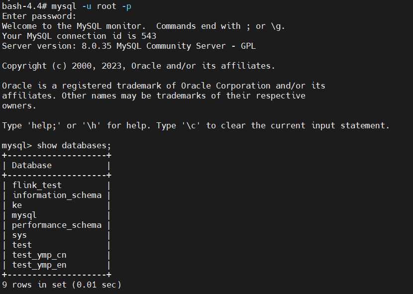 源端数据库是公司内部的一个MySQL小系统库,MySQL的版本是8.0.35,分为中英文两个库,截图已做简单的脱敏处理。