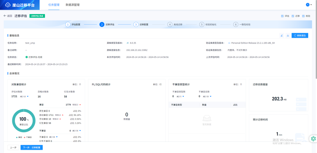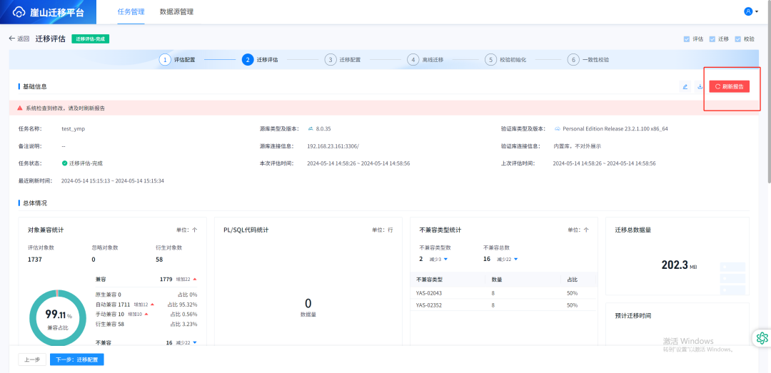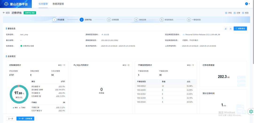 YMP会开始进行迁移评估,稍微等待一段时间后,会出现评估报告