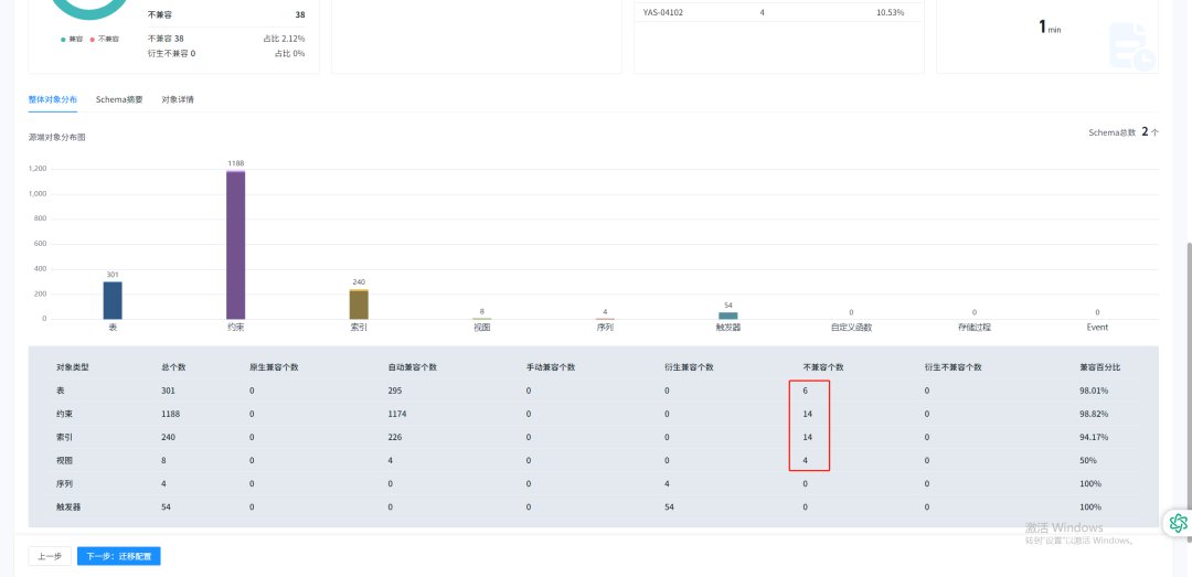 可以看到,表、约束、索引和视图都有不兼容的项。