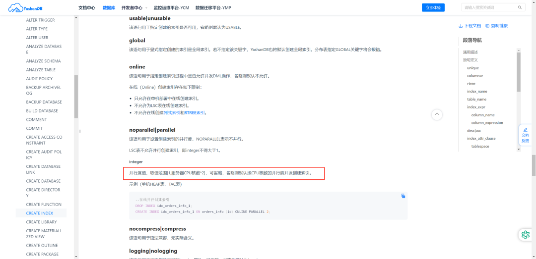 研究了老半天,在数据库的官方文档里找到个建立索引的并行度 PARALLEL,其中这个参数的范围是[1,CPU核数*2]。