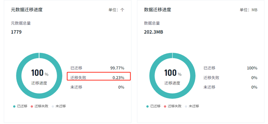 这下大部分的元数据都终于迁移过来了,但是仔细一看还是有极少量的失败。
