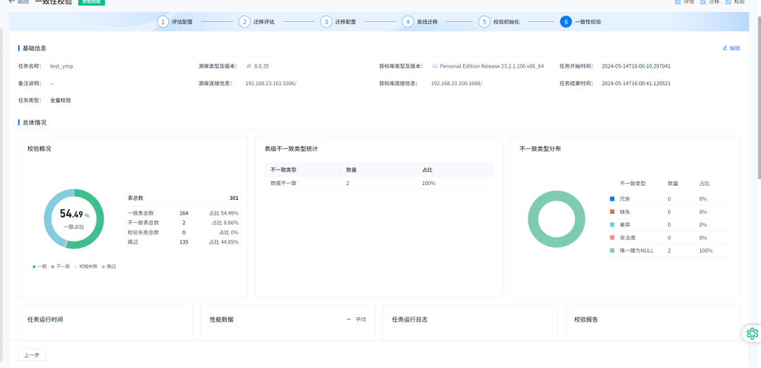 可以看到有2张表因为空字符串问题导致不匹配,有135张表因为是无主键表所以跳过了,其他的表都是一致的。