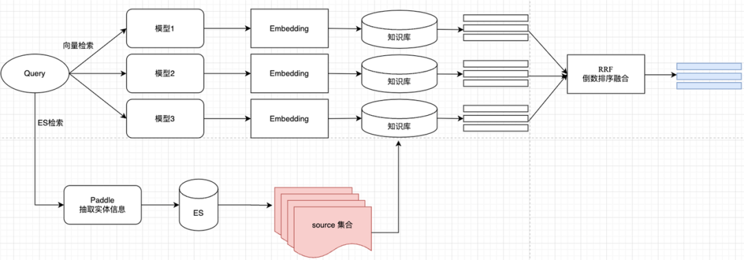 milvus向量检索:对source集合内的每个子doc进行更精确的向量检索匹配,我们选取了3个异质化的Embedding模型,构建了三个collection集合,在这三个collection上并行检索topk,最后再通过RRF算法进行融合截断。