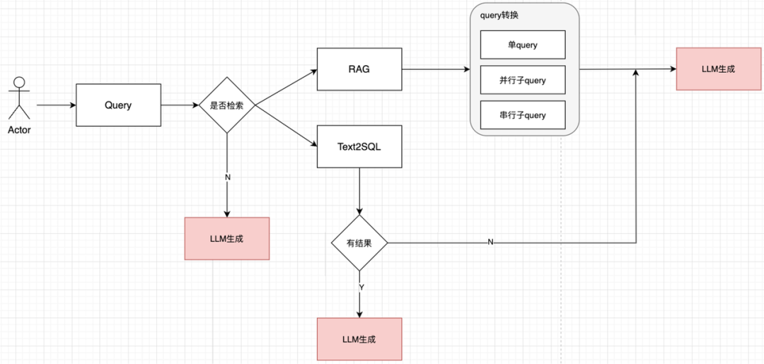 所以结合了query转换、检索时机、Text2SQL三个改造,我们的整体方案是这样的: