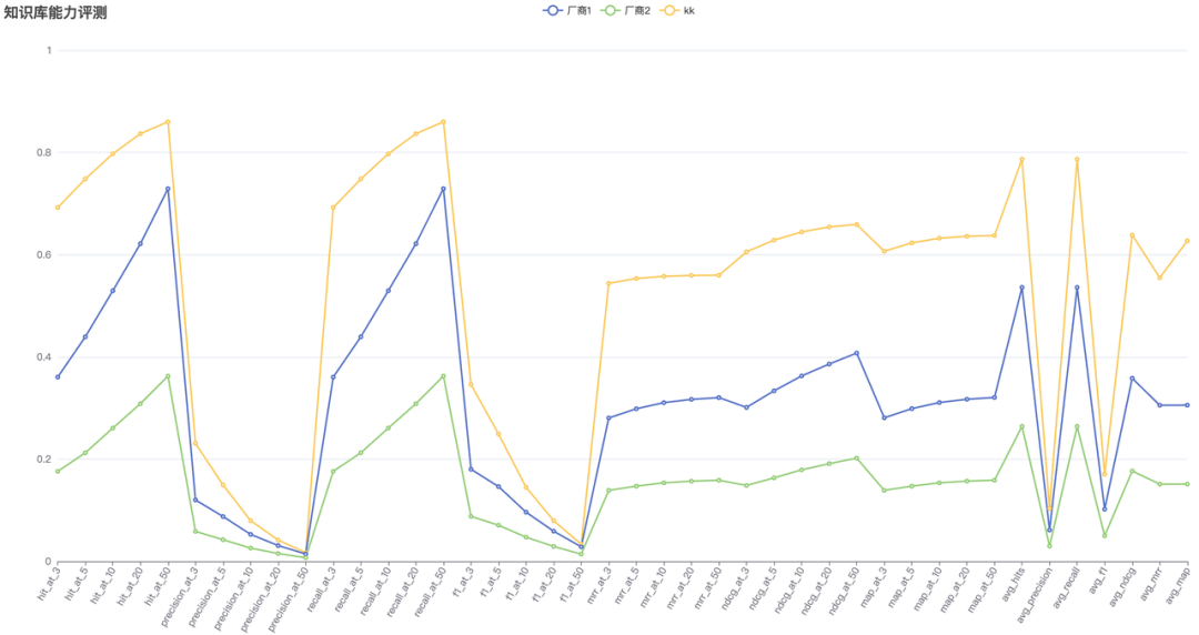 在原创剧情知识库方案上,我们也使用了头部厂商的知识库方案进行构建,并和我们自建的知识库进行对比,使用原创剧情上提取出的5000个问题作为测试集,评测不同知识库方案的剧情召回能力。评测结果显示,我们自建知识库在各个指标上均超过了头部厂商的知识库方案。