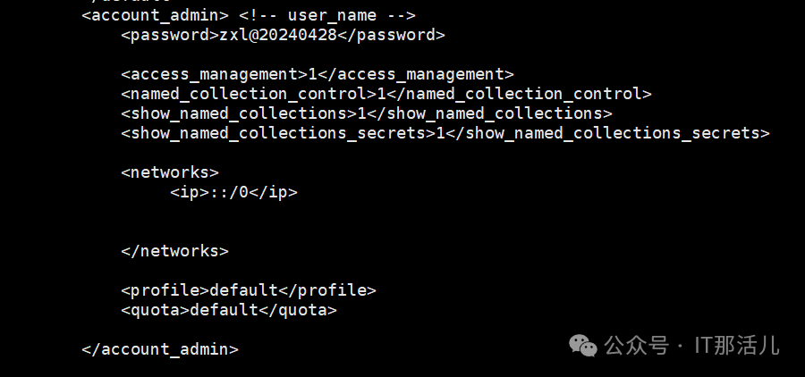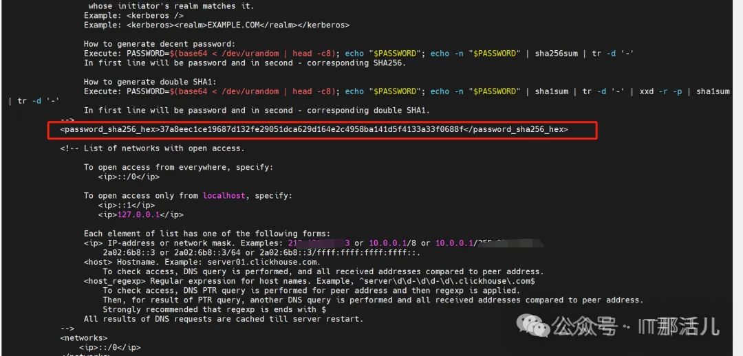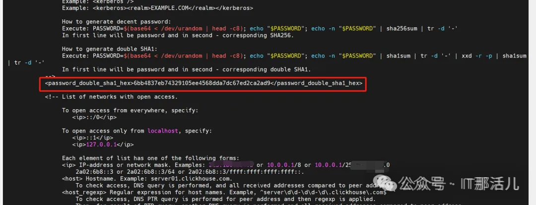vi /etc/clickhosue-serer/user.xml 修改明文<password>为<password_double_sha1_hex>