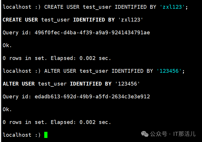 CREATE USER test_user IDENTIFIED BY 'zxl123';