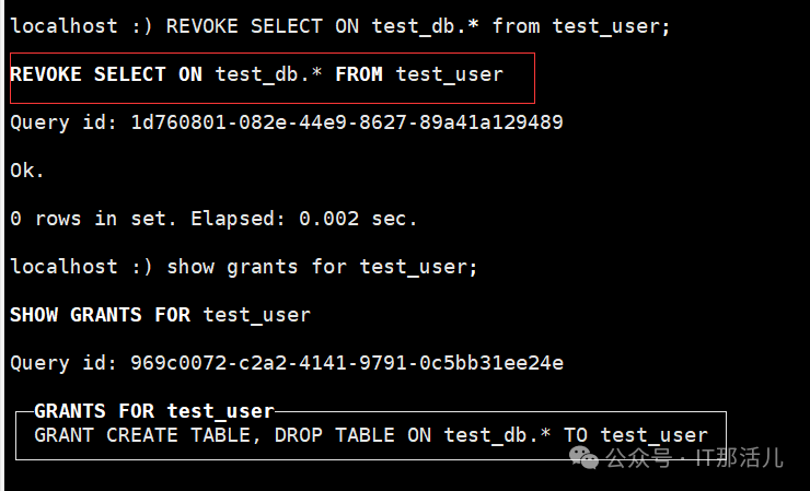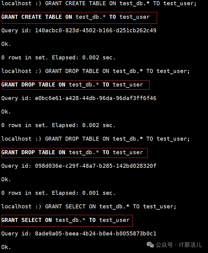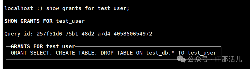 3.3 赋予test_user用户在test_db数据库下所有表的增删改查权限