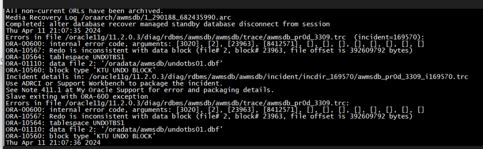 看报错,应该是undo数据块损坏了。