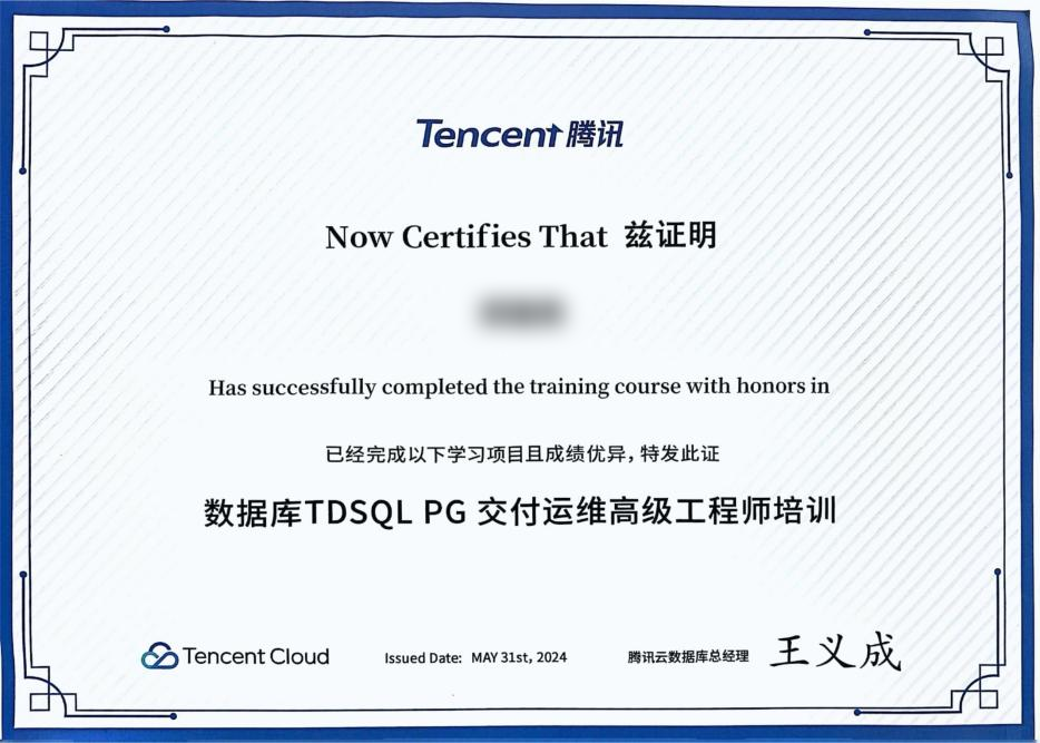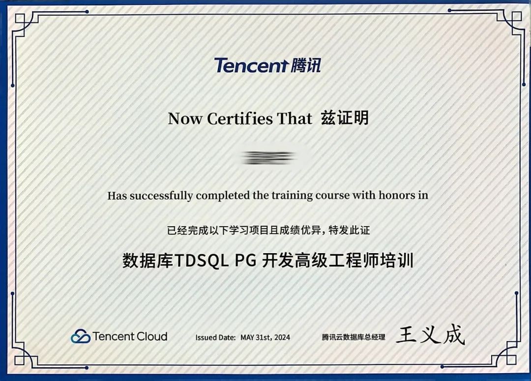 通过这次培训让我接触到了数据库方面的技术和知识,拓宽了自己的视野,也进一步强化了自己的能力,同时也为后续参与TDSQL数据库相关的信创项目增强了信心。