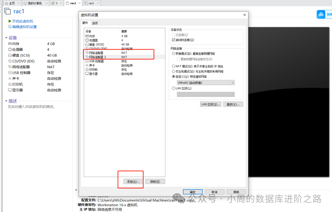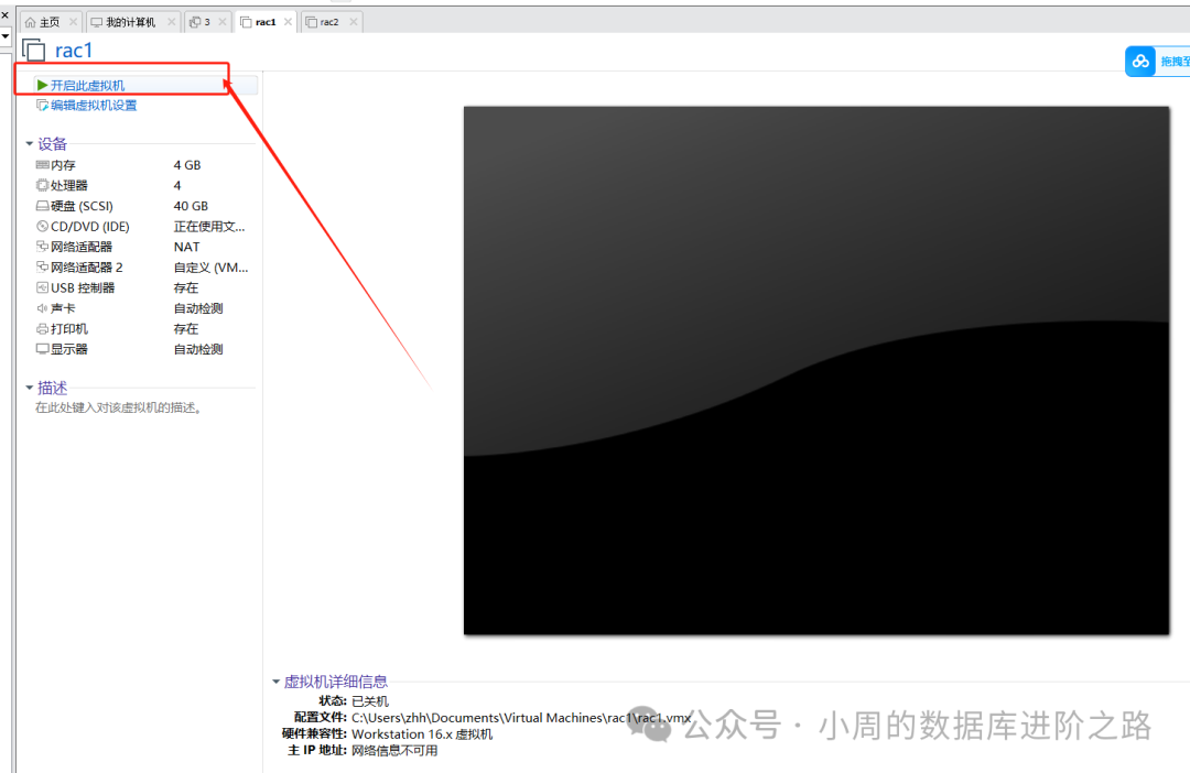 本次安装以两节点 RAC 为例,需要两台虚机,参考配置内存 8g、CPU 4 核、用于存储数据的磁盘 40G,至少 2 个网卡,且网卡名称一致,两张网卡配置 IP 分别为 Public IP 地址、Private IP 地址,VIP 地址、SCAN IP 地址不需要配置在网卡上。
