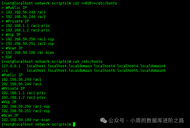 RAC集群至少需要规划7个IP地址,两台虚机分别作为RAC 节点 1、节点 2,参考IP规划如下: