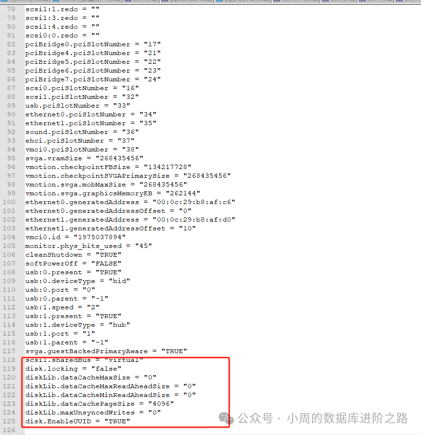 打开两个虚拟机的安装目录,在vmx文件最后添加(scsi1指定总线为1的所有盘):
