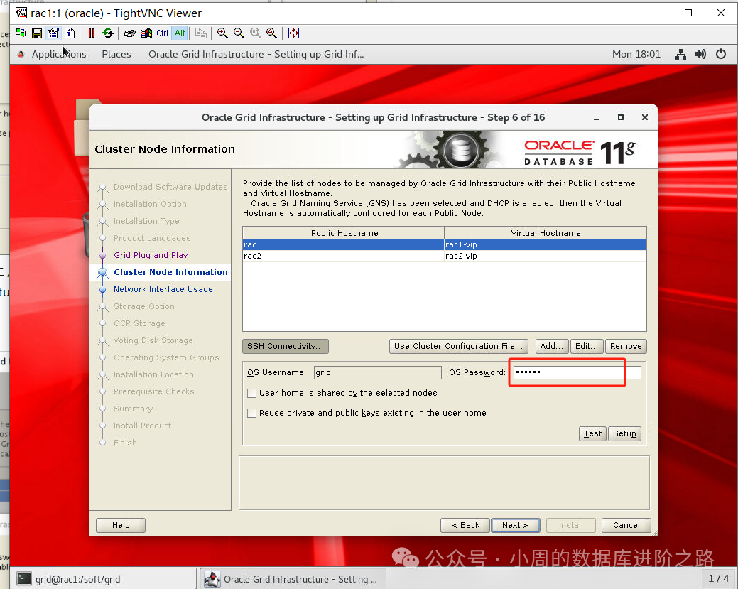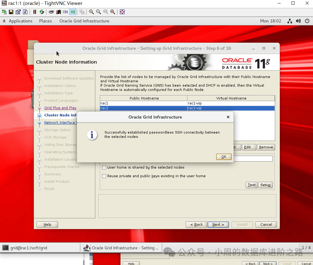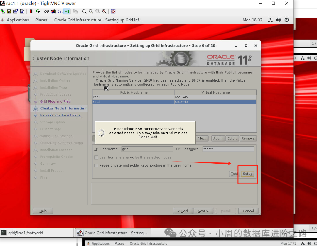 配置 oracle 用户互信,输入密码,点击 setup 开始ssh互信