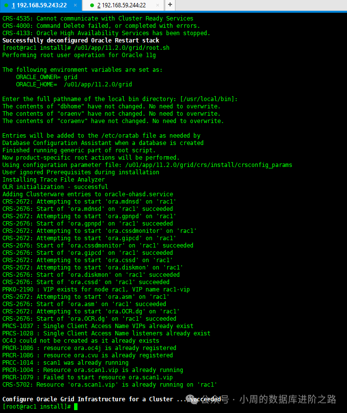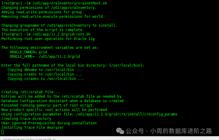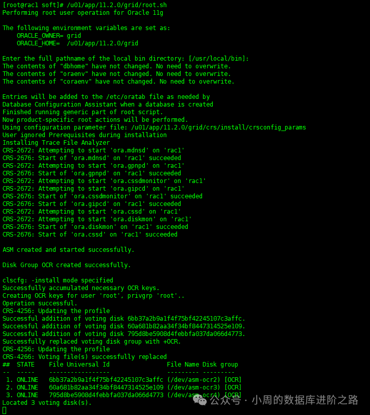 [root@rac1 ~]# /u01/app/11.2.0/grid/root.sh