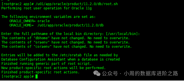 [root@rac1 oraInventory]# u01/app/oracle/product/11.2.0/db/root.sh
