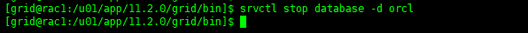 [grid@rac1:/u01/app/11.2.0/grid/bin]$ srvctl stop database -d orcl