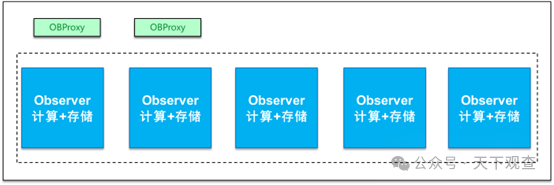 在技术架构上OB相比其他四个产品拥有比较独特的差异。OB是“五军”之中唯一采用对等部署的原生分布式数据库,每个数据库节点的角色几乎都是一样的,不需要额外配置单独的服务器部署一些管理角色、计算角色、存储角色。