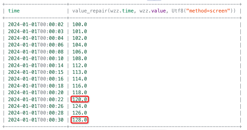 SELECT value_repair(time, value, 'method=screen') FROM wzz;