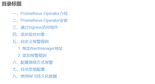 Prometheus Operator 是了为简化在 Kubernetes 上部署、管理和运行 Prometheus 和 Alertmanager 集群而设计的,它为监控 Kubernetes 资源和 Prometheus 实例的管理提供了简单的定义,比如自带了一些报警规则和展示看板,方便我们快速使用。