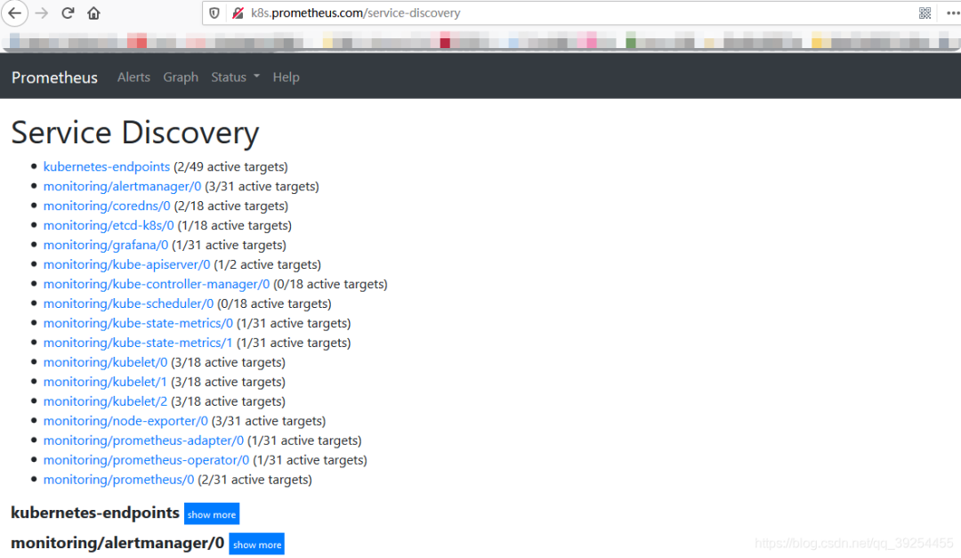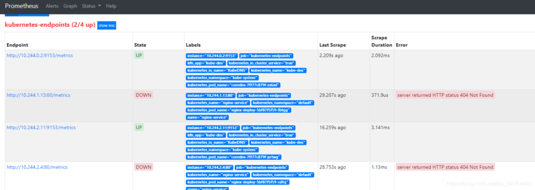 重建完成后就可以看到 targets 页面下面有 kubernetes-endpoints 这个监控任务了: