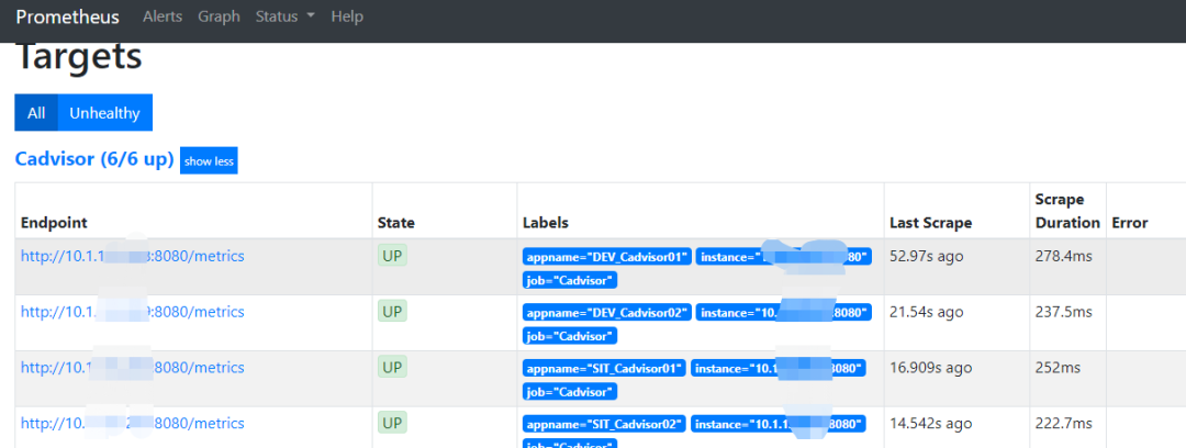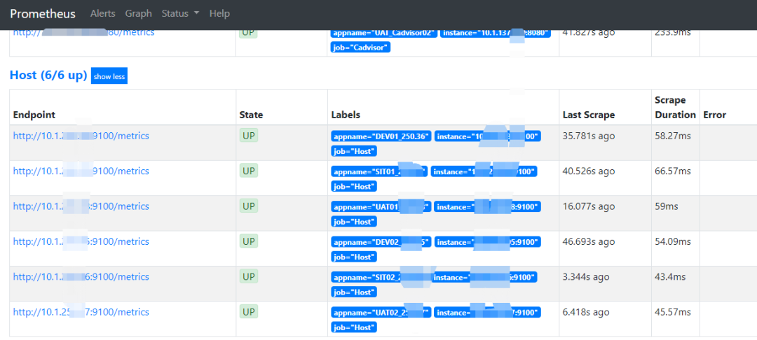 Prometheus 支持多种服务发现机制,可以自动获取要收集的 targets,包含的服务发现机制包括:azure、consul、dns、ec2、openstack、file、gce、kubernetes、marathon、triton、zookeeper(nerve、serverset),配置方法可以参考手册的配置页面。可以说 SD 机制是非常丰富的,但目前由于开发资源有限,已经不再开发新的 SD 机制,只对基于文件的 SD 机制进行维护。针对我们现有的系统情况,我们选择了静态配置方式。