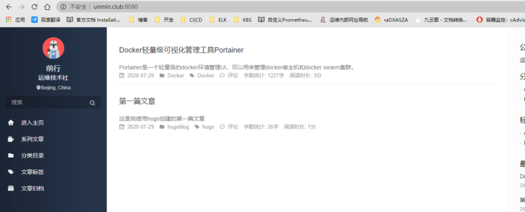 1$ hugo server --bind="0.0.0.0" -v -w -p 8080 -b http://www.unmin.club
