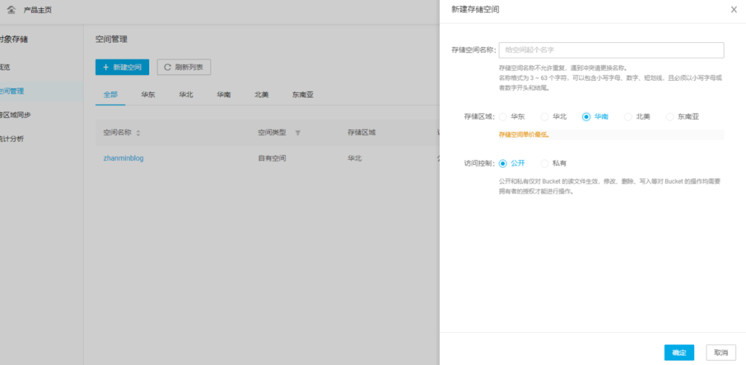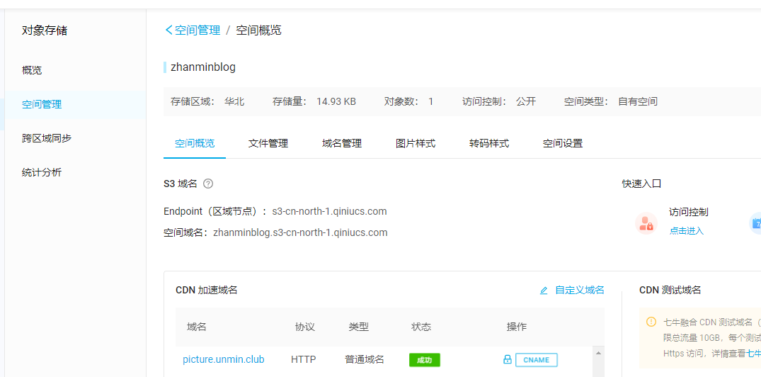 在这里注册七牛云用户,点击对象存储,创建存储空间