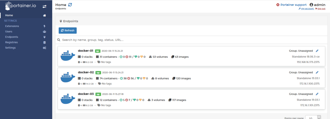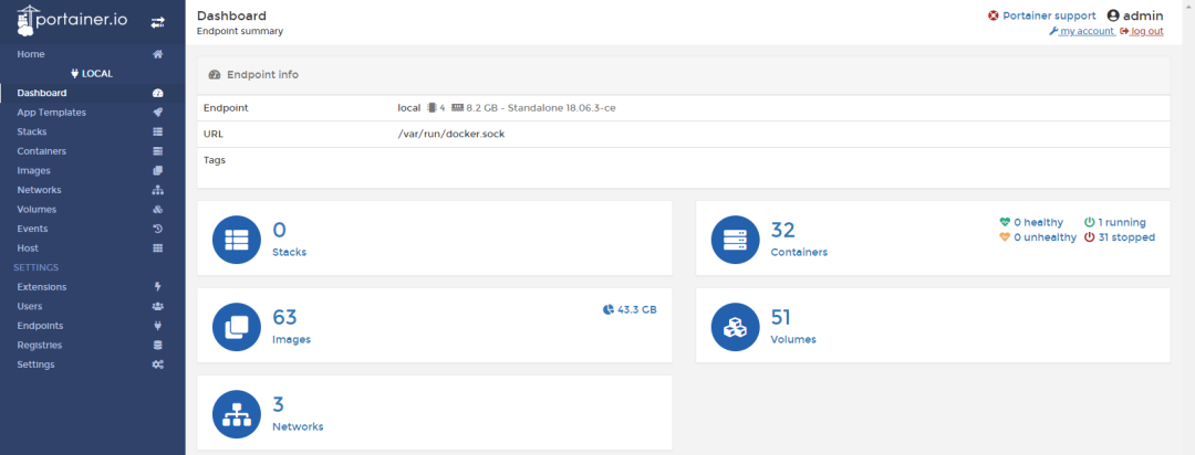 Docker的可视化管理工具有DockerUI、Shipyard、Rancher、Portainer等,具体的功能差异请查看Docker的可视化管理工具对比,本文使用Portainer工具对Docker环境进行管理。