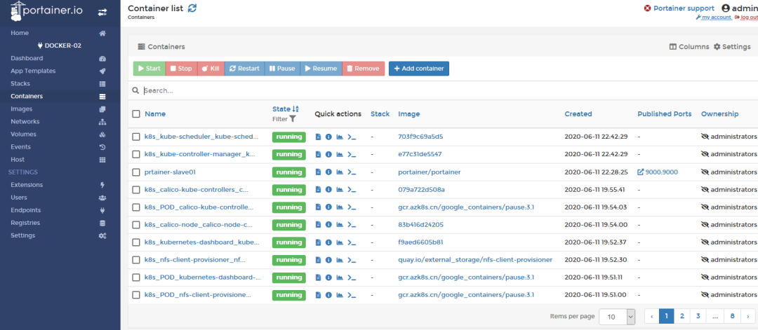 容器控制台操作:查看容器,启停容器,查看容器占用的性能(内存,cpu等)