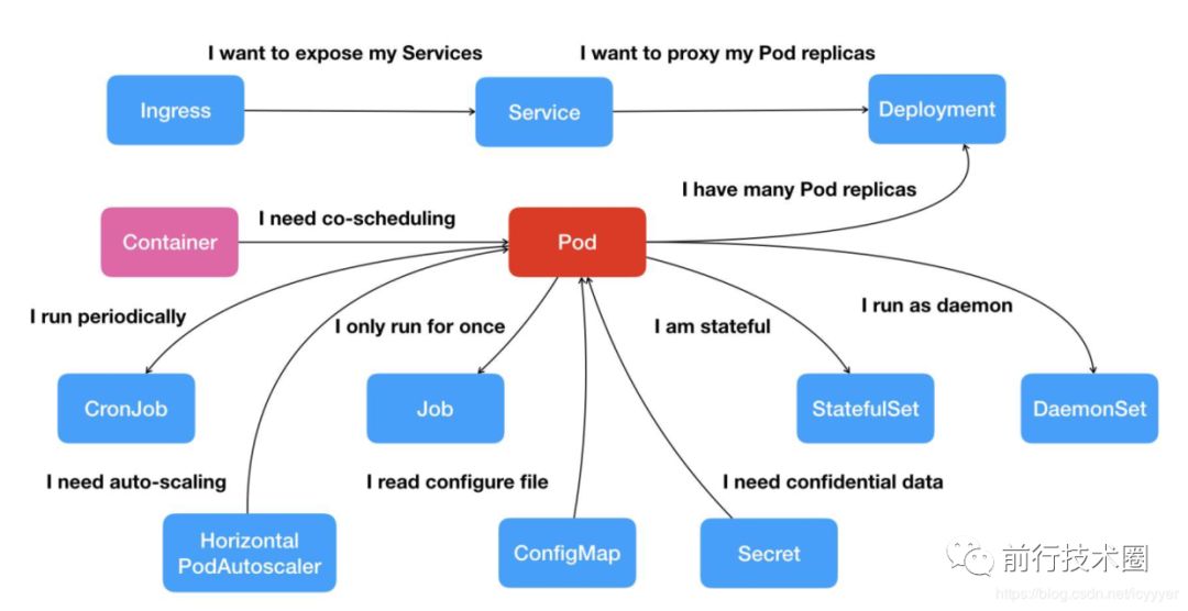Kubernetes中的绝大部分概念都会被抽象成Kubernetes管理的一种资源对象,下图为k8s资源对象全景图