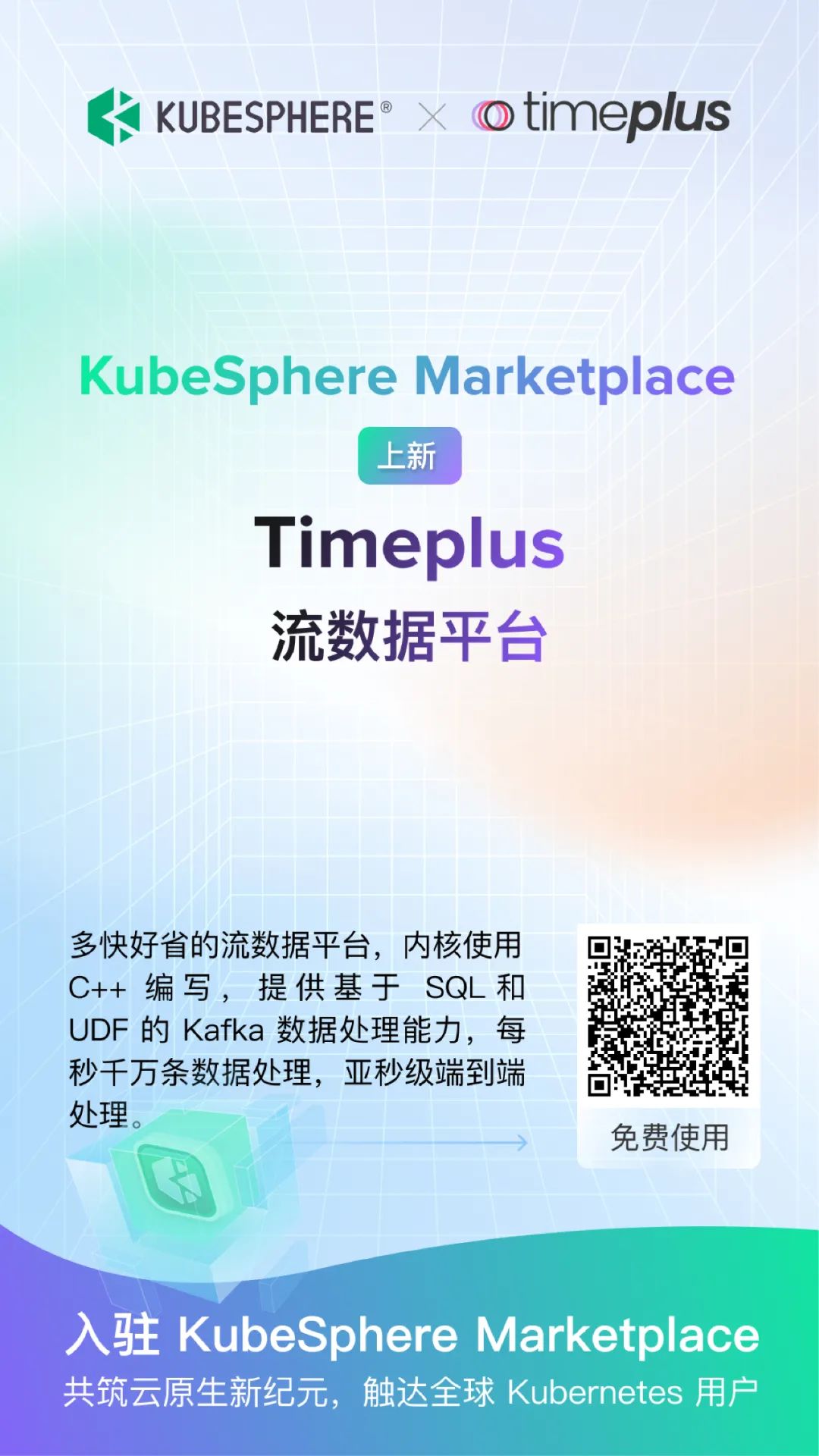 近日,Timeplus 流数据平台成功上架 KubeSphere Marketplace!