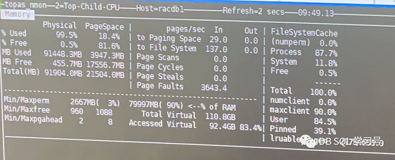 之前处理过一个数据库查询速度非常缓慢,尤其是在高峰期。此外,登录AIX系统的速度也很慢,用户在尝试登录时常常需要等待较长时间。登录成功后进一步检查,发现内存占用率非常高。这种异常情况可能影响系统的整体性能和用户体验,需要进行详细的分析和优化。