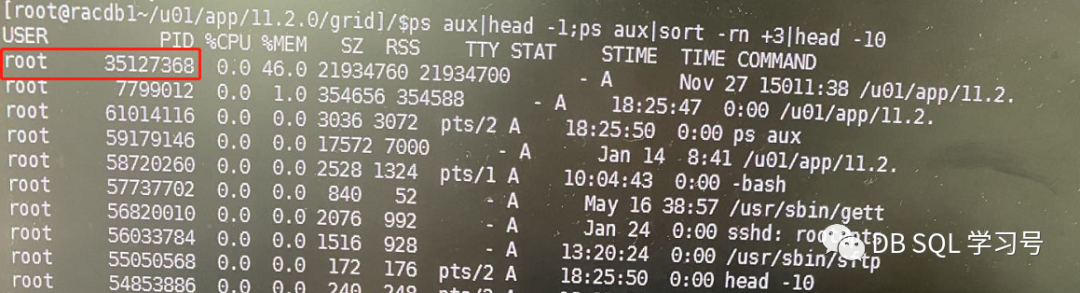 经过检查,我们发现是/u01/app/11.2.0/grid/bin/osysmond.bin