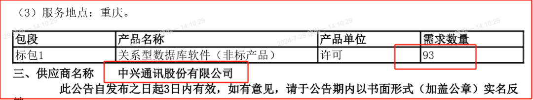 重庆移动:单一来源采购中兴:GoldenDB 93套 2024-07-11