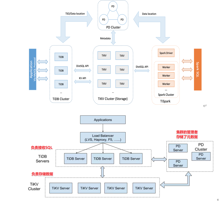 TiKV 是 TiDB 的分布式存储层,它使用 RocksDB 作为其本地存储引擎,优化了写入性能和磁盘空间使用。 TiKV 将数据分散存储在多个节点上,通过 Raft 协议保证数据的强一致性和高可用性。