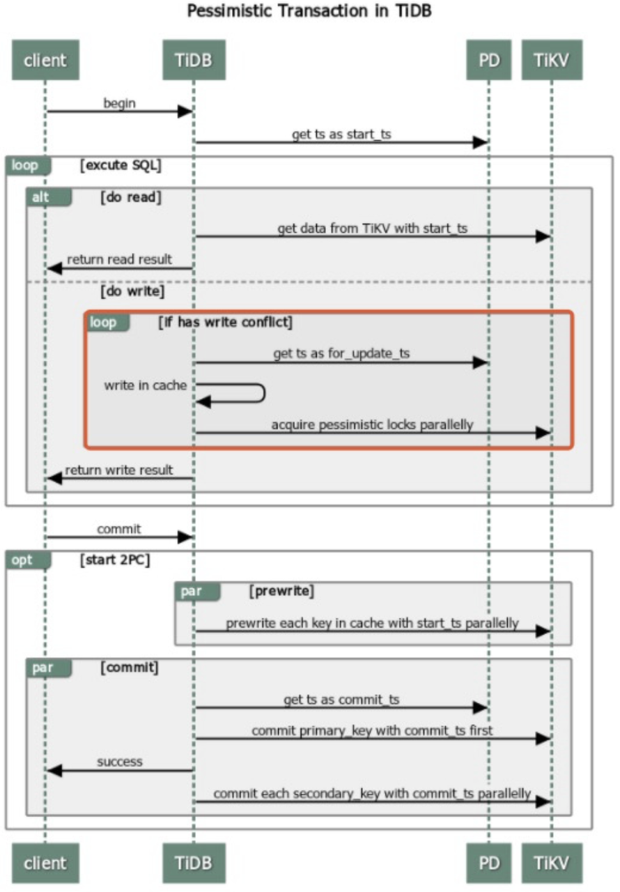TiDB 支持两种类型的锁:乐观锁和悲观锁,以适应不同的业务场景。 乐观锁:适用于写冲突较少的环境,通过检测在事务开始后数据是否被其他事务修改来避免锁的争用。如果检测到冲突,事务会进行重试。 悲观锁:适用于高冲突环境,通过在事务开始时就锁定涉及的数据行,防止其他事务修改这些数据。
