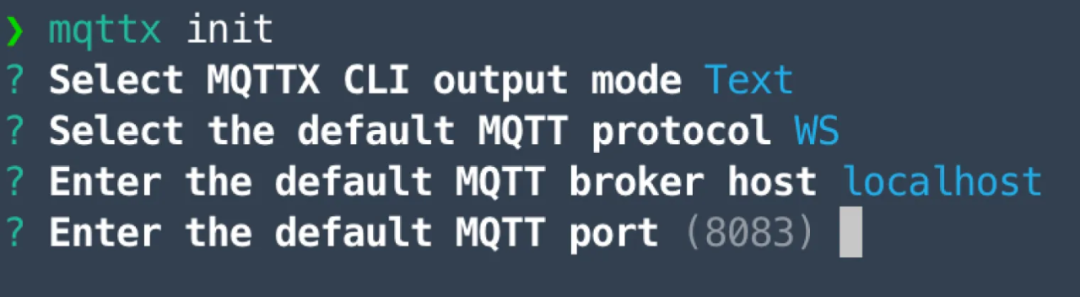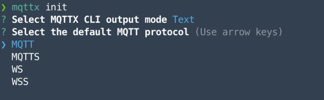 mqttx init命令并选择您首选的默认协议。