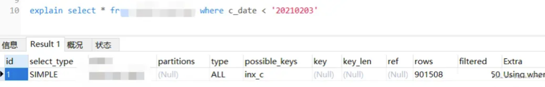 操作到底做了什么?我们来看看这个语句的 explain。