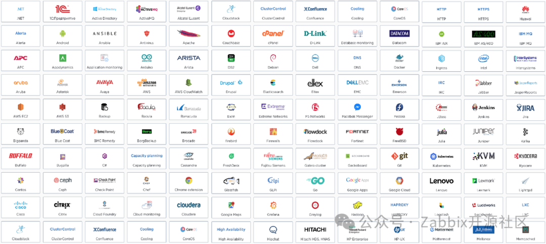 当前金融行业监管机构对监控系统覆盖的全面性,IT组件监控纳管的及时性提出日益严苛的要求,Zabbix提供现成且经过验证的监控模板,可在最短时间内将最新上线的设备或应用纳入监管平台,减少可能为生产系统带来的风险。