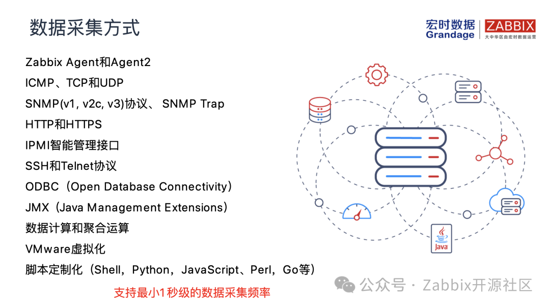 企业级:Zabbix 因其分布式架构以及通用性的特点,能够稳定快速的进行大规模部署和应用,尤其适用于对业务连续性高的企业环境:
