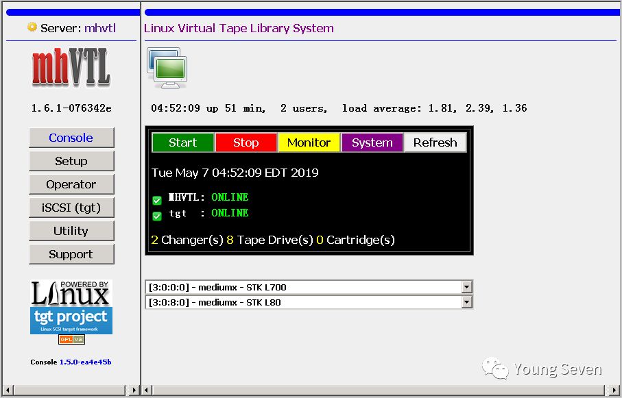 现在,您可以通过Web浏览器访问mhVTL-GUI(例如http://192.168.31.141/mhvtl/)。 默认密码是mhvtl。
