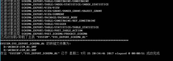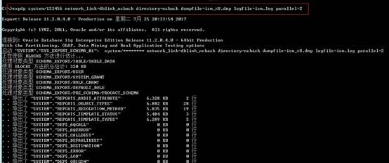 expdp system/123456 network_link=dblink_ncback directory=ncback dumpfile=ism_%U.dmp logfile=ism.log parallel=2 ----采用并行备份