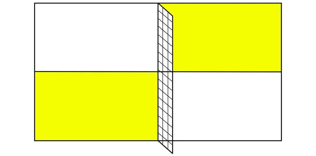 不同于单打比赛,双打比赛对发球时球需要落在的区域是有限制的。规则要求:球应依次落在发球方和接发球方的右半场(包括中线),如下图所示。
