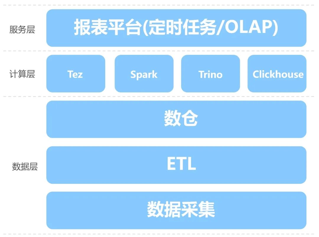 报表平台作为公司大数据平台组的核心服务,其架构在早期迭代中引入了 Tez、Spark、Trino、ClickHouse 等多种开源技术,以满足业务需求和应用场景的多样性。然而,随着平台的发展,一些挑战也逐渐显现: