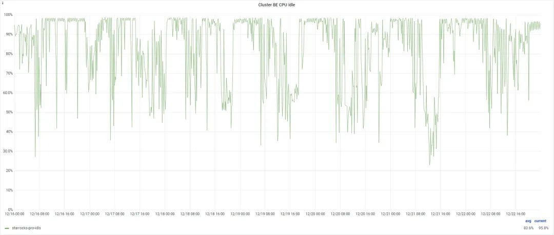 迁移后,计算任务性能提升了 48.84%,耗时缩短至原有方案的一半。同时,StarRocks 在空闲时段的资源利用率提高,报表执行效率和任务处理能力显著改善。